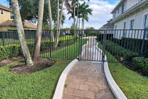 Exclusive Fences out in Pompano Beach, Florida replacing this old wood railing with this beautiful new 42′ high aluminum railing & gate.