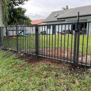 Exclusive Fences working recently in Davie, Florida installing this new combination 6′ white PVC/Vinyl privacy and bronze mechanical aluminum fence & gates.