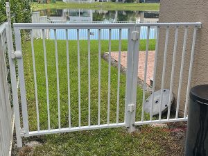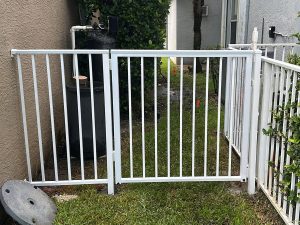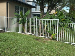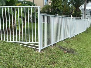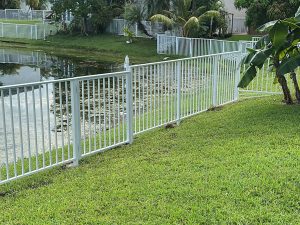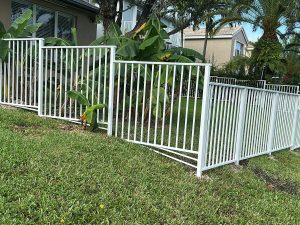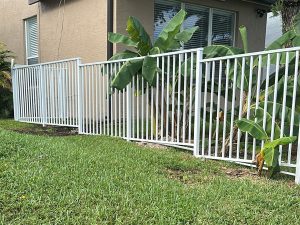 Exclusive Fences showcasing this beautiful new 4′ white mechanical aluminum fence. This job in Miramar, FL included 3 4′ walk gates as well. CALL Exclusive Fences TODAY for your FREE ESTIMATE. We offer financing!