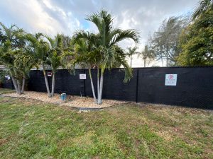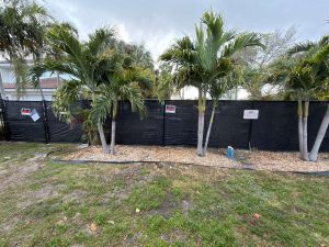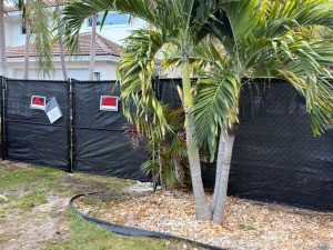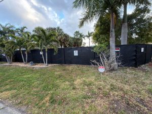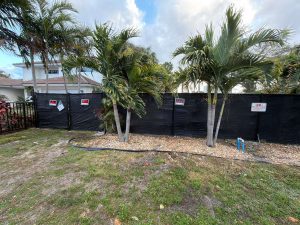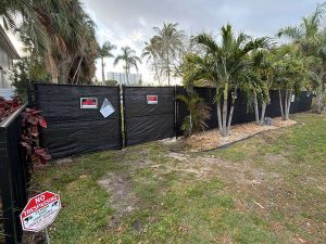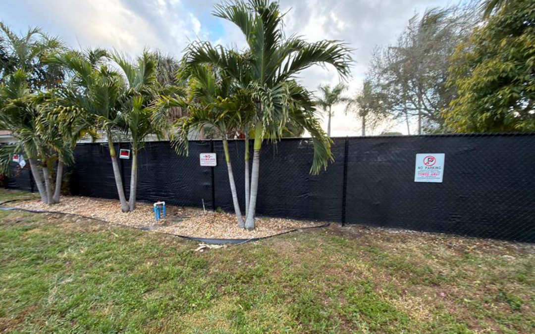 Exclusive Fences showcasing this 6′ black vinyl chain link fence with a 12′ double drive gate and windscreen completed recently on an empty lot in the Pompano Beach – Broward County, FL area. The homeowner is building a house on the lot and he is having problems with people dropping garbage there. Problem solved!