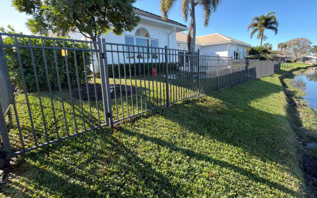 Exclusive Fences showcasing this beautiful new 5′ bronze mechanical aluminum fence with 3 rails at a residence in the Plantation – Broward County, FL area. A few years back we did the sides of this same house and when it was sold the new owner called us back to finish it up.